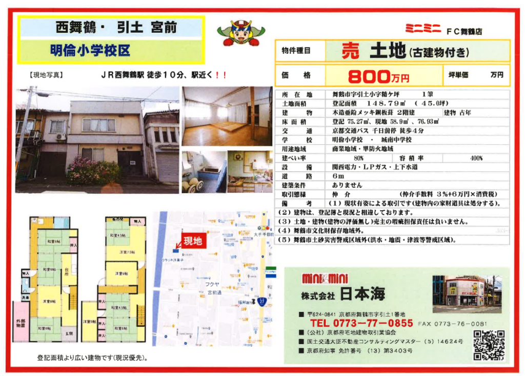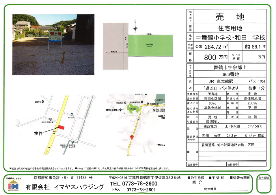 | 所在地 | 京都府舞鶴市 引土 (売地)引土1号地・2号地 |