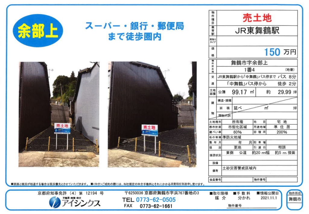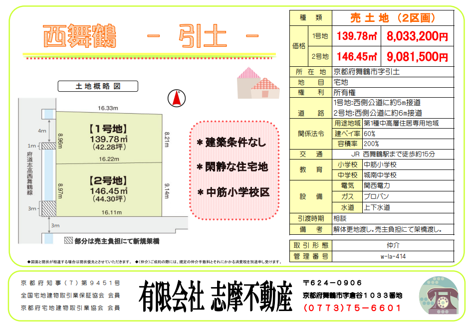 | 所在地 | 京都府舞鶴市 引土 (売地)引土1号地・2号地 |
