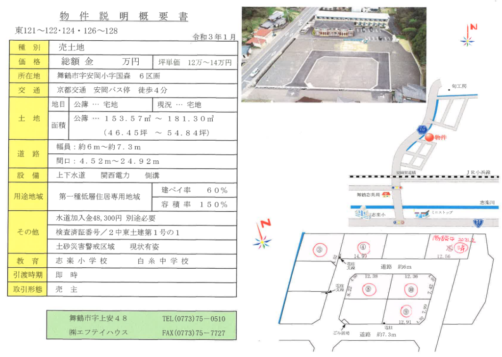 | 所在地 | 京都府舞鶴市 安岡小字国森 (売地)安岡分譲地④⑧⑩ |