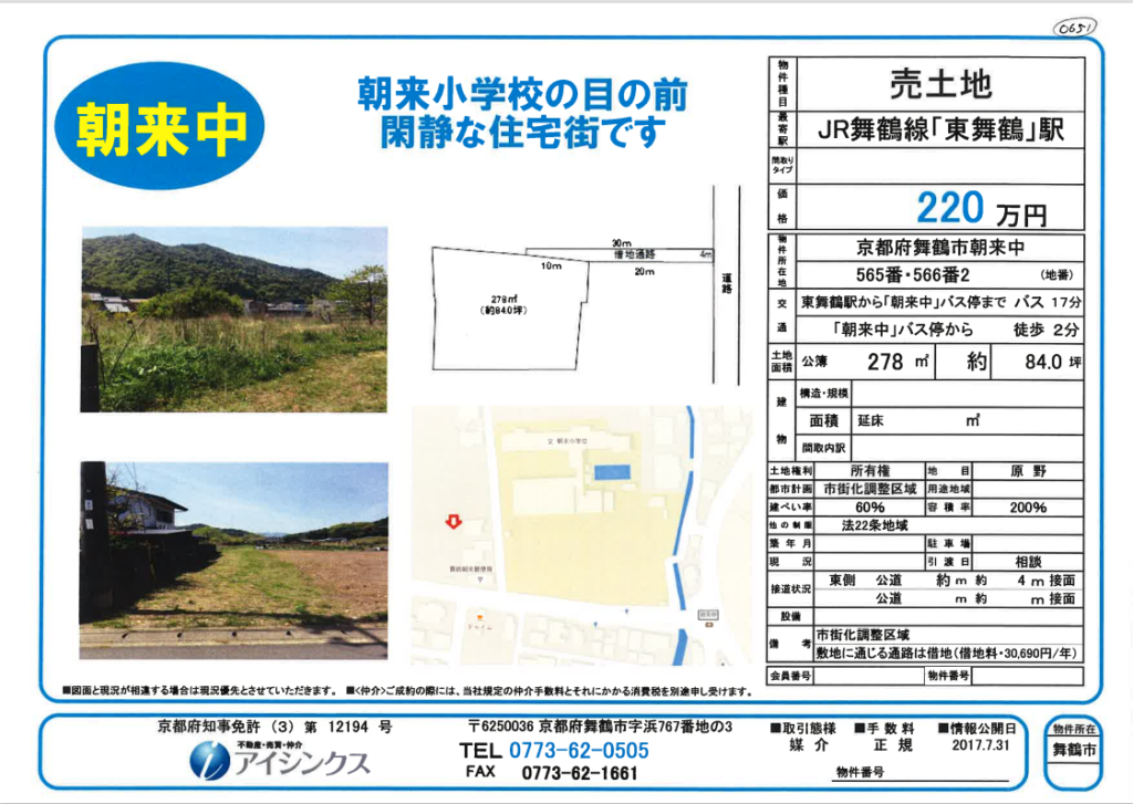 | 所在地 | 京都府舞鶴市 余部上 (売地)余部上708-2 |