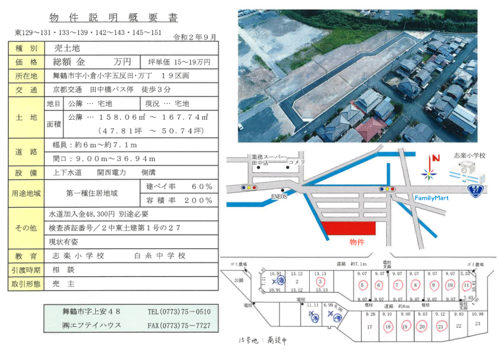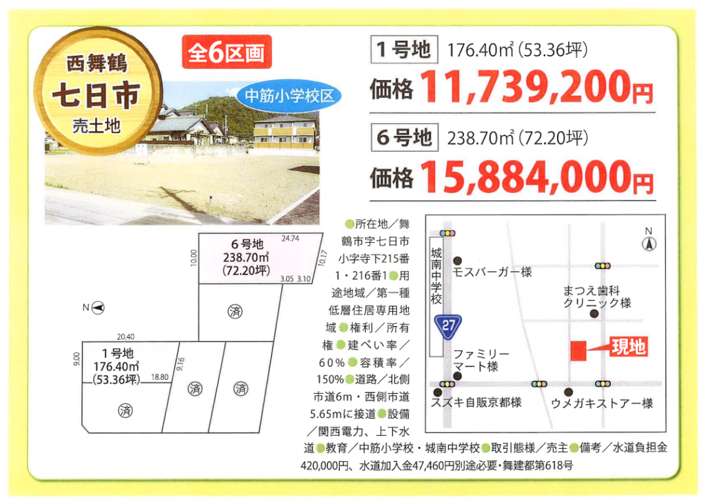 | 所在地 | 京都府舞鶴市 小倉小字五反田・万丁 (売地)小倉小字五反田・万丁分譲地 |
