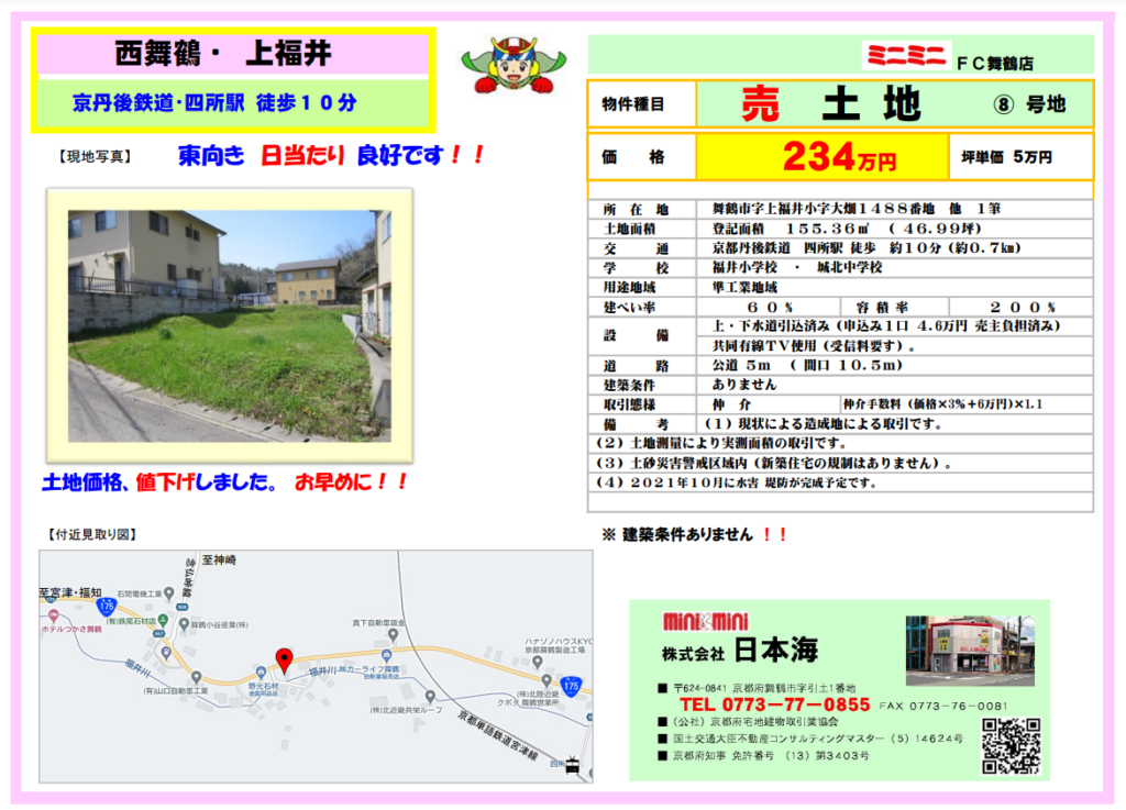 | 所在地 | 京都府舞鶴市 上福井 (売地)上福井⑧号地 |