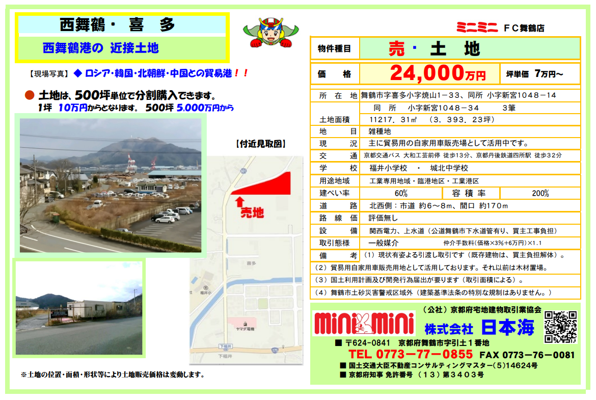 | 所在地 | 京都府舞鶴市喜多 (売地)喜多 |
