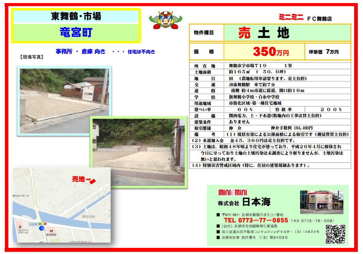 所在地京都府舞鶴市竜宮町  (売地)竜宮町