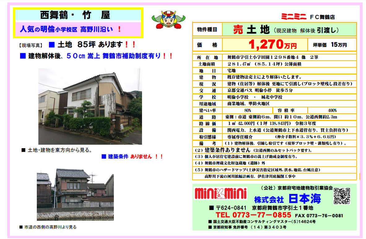 | 所在地 | 京都府舞鶴市引土小字田園 (売地)竹屋 |